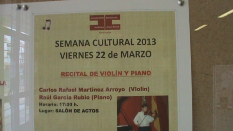 El Conservatorio Profesional de Música "Ángel Barrios" de Granada, del 18 al 22 del corriente marzo ha celebrado una Semana Cultural con Conciertos de alumnos y profesores, Cursos de Perfeccionamiento, etc. Dentro de la misma semana el Conservatorio también ha presentado Conciertos Extraordinarios con agrupaciones y solistas de diversos instrumentos y entre ellos ha sido programado nuestro paisano CARLOS RAFAEL MARTÍNEZ ARROYO, violinista que viene pisando fuerte por su preparación y ejecución de las obras que interpreta.