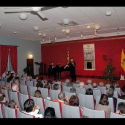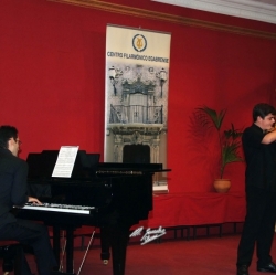 Otra vez "lleno hasta la bandera" fue lo que nos trajo el Dúo de Violín y Piano que actuó ayer 20 de abril a las 21 horas en el Centro Filarmónico Egabrense en las Noches Filarmónicas. Y no podía ser de otra forma pues los intérpretes que se presentaron en su Salón de Conciertos con un Recital de altísima calidad fueron nuestro paisano de 14 años Carlos Rafael Martínez Arroyo, que lleva adelante una formación violinística imparable, bajo las enseñanzas del profesor José Mª Fernández Benítez así como del famoso violinista Gonçal Comellas, en clases magistrales y el pianista Raúl García Rubio, profesor de Piano Acompañante del Conservatorio Superior de Música "Victoria Eugenia" de Granada.