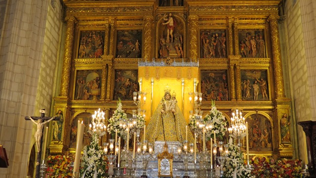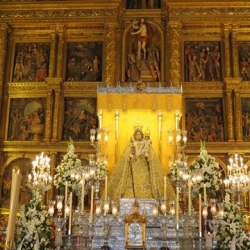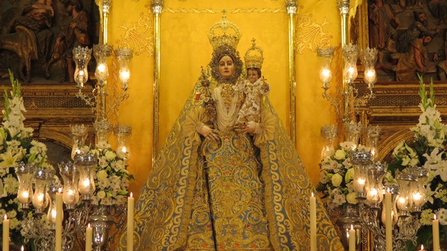 La Virgen de Araceli en el altar mayor lucía sus mejores galas, en este día tan señalado para nuestro pueblo hermano y el templo en el que no cabían más flores, procedentes de la Ofrenda que le habían hecho sus devotos el día anterior, estaba resplandeciente.