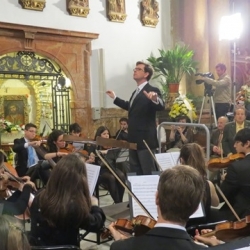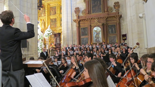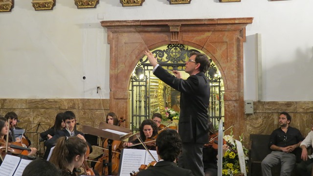 La Orquesta Sinfónica del Conservatorio "Maestro Chicano Muñoz" está constituida por alumnos que cursan sus estudios profesionales de música en Lucena, procedentes de toda la comarca y bajo la batuta de Víctor Nájera Sánchez, Profesor de Orquesta de dicho conservatorio, hicieron un trabajo muy meritorio, son chicos y chicas jóvenes que ya dominan sus instrumentos y lograron un empaste y sonido dignos de formaciones de más fuste. Víctor Nájera, que ya lo he visto dirigir otras veces, "no dejó escapar una y tuvo a raya" tanto a los músicos como a los coralistas que también estaban bajo su mando.