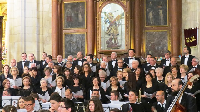 Como Canto de Entrada tuvimos el "Benedictus sit Deus" de W.A. Mozart y ya desde aquí éste sirvió de tarjeta de presentación de cómo iba a transcurrir la Misa-Concierto que presenciamos, con unas formaciones que sobrepasaban el centenar de personas.