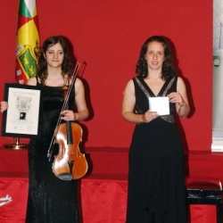 Tras el bis ya dicho, como siempre el Presidente le entregó a la violista un cuadro recuerdo de su paso por Noches Filarmónicas, agradeciéndole su magnífica actuación y a la pianista Vanesa le entregó un CD de la grabación de una actuación de la Orquesta de Plectro del C.F.E., para no repetir cuadro.