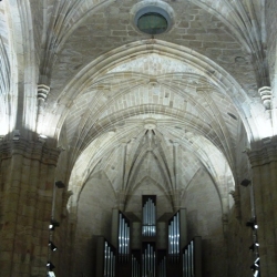 Por motivos musicales he vuelto a este grandioso edificio, al cabo de los años, el pasado 10 de junio a un Concierto de Orquestas de alumnos (Orquesta I-1er.Ciclo Enseñanzas Profesionales- y Orquesta II-2º Ciclo E.P.-) organizado por el Conservatorio Oficial, en el que intervino como solista nuestro paisano Carlos R. Martínez Arroyo, concierto celebrado a las l9:30 horas en el Auditorio del Complejo, que es la antigua iglesia del convento adaptada a las audiciones musicales, con un aforo de 600 butacas y con la belleza que le puede dar el arte gótico a un templo de proporciones casi catedralicias.