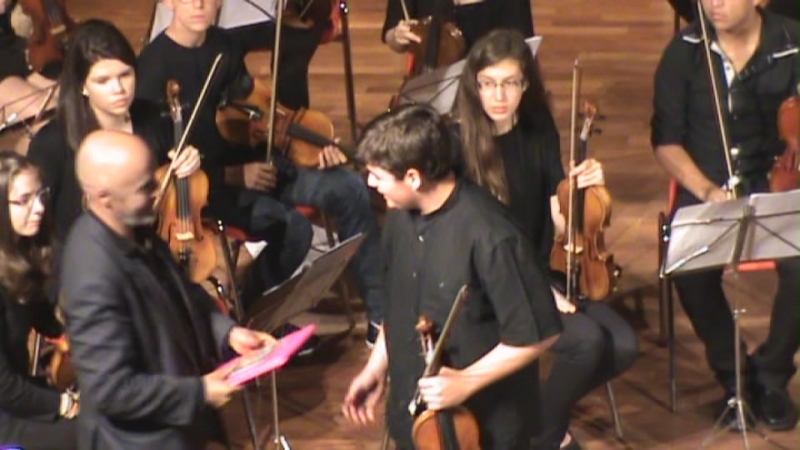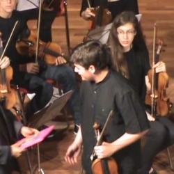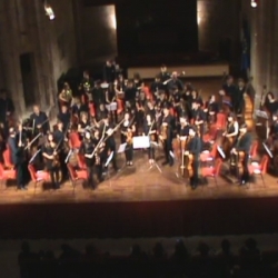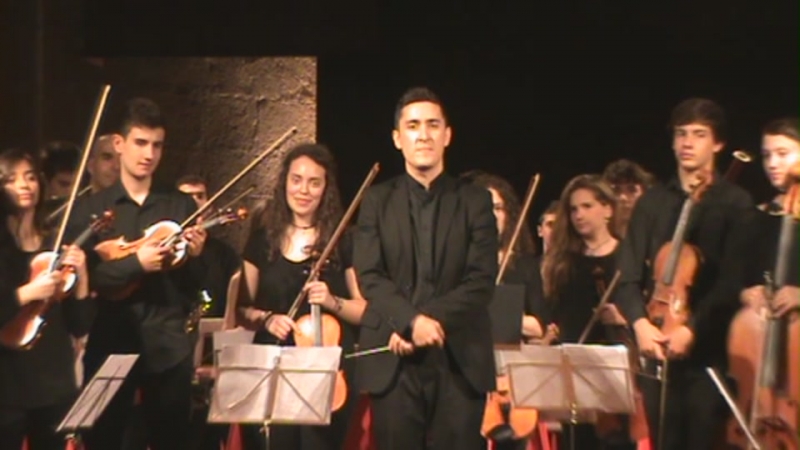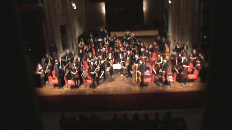 Comenzó con la presentación de la Orquesta I (de Cuerda) bajo la dirección del profesor de viola Fernando Agúndez que llevó a su formación con seguridad logrando un sonido excelente. El efecto plástico era espléndido pues el escenario situado en el crucero de la antigua iglesia y con el fondo de un órgano en el ábside, no podía ser más sugerente. Y el acústico excelente. Sólo faltó un toque de megafonía para las palabras que dirigió al público el director como presentación de las obras, pues eran casi inaudibles.