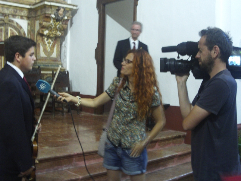 Con anterioridad al concierto las cámaras de las televisiones Canal Sur y Torcal de Antequera realizaron unas entrevistas al director artístico del C.F.E. José M. Molina Guarddon, al violinista solista Carlos Martínez Arroyo y a Teresa Moreno Rueda, directora del conservatorio.