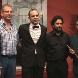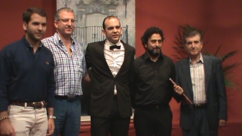 El compositor, que había actuado de "ayuda al pianista", abrazó seguidamente a los artistas y dirigió unas palabras a todos los asistentes por haber acompañado este acto, felicitó a estos maravillosos músicos que tenemos en Lucena y en Cabra, tanto en Cabra como en Lucena, al CFE por brindar su Casa y al Sr. Alcalde de Cabra por su presencia.