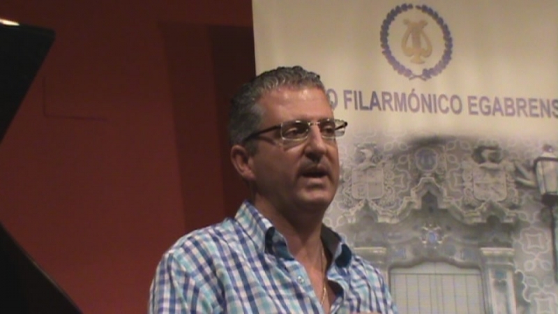 Y siguió: "Este libro ya es una realidad tangible, por cierto de un diseño impecable, (enhorabuena, Arrabal) --se refería al pianista egabrense José Luis Arrabal Maíz-.