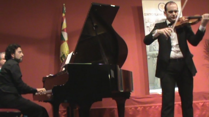 Antonio, que yo sepa, era la primera vez que lo oíamos en Cabra y por supuesto no defraudó, hizo su trabajo con total entrega, un pianista de categoría de la saga Chicano, como he mencionado. Y a Ángel si lo hemos escuchado en su pueblo más veces, y cómo "maneja" el violín, el buen violín que posee, al que le saca un sonido excepcional. Muchísimos aplausos y bravos recolectaron.