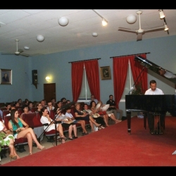 Este año podría haber obtenido el Título Superior de Piano, pero por cambiarse al "Plan Bolonia de Estudios Europeos" ha significado para su carrera un año más de permanencia en el Conservatorio cordobés. Es un intérprete de clásicos, como todos los que preparan los conservatorios. A este pianista que presento, mi nieto, le gusta la improvisación, forma de interpretar muy antigua pues ya Mozart lo hacía, pero no quiero comparar ni mucho menos. Al haber en el plan de estudios una asignatura optativa denominada "Improvisación", la ha elegido y le va muy bien y por trasladarse a Sevilla su profesor Isaac Tello ha tenido que terminarla allí, obteniendo la calificación de Matrícula de Honor y un documento con la opinión de su maestro, para su currículo, en el que lo califica como "alumno extraordinario", uno de los más sobresalientes alumnos, quizá el mejor, de todos los que ha tenido en esta asignatura."