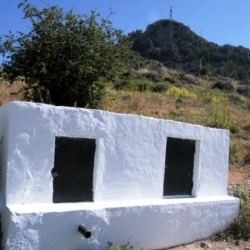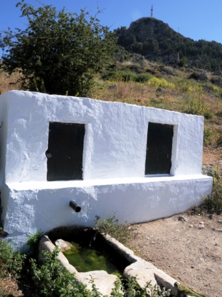 Y en la falda de la sierra que la guarnece una hermosa fuente a quien llaman la Viñuela, perenne a pesar no sólo de los rigores del estío sino aún de los más secos temporales pues, sobre ser dulce, abundantemente refrigera a los caminantes, refresca a los ganados y sirve para el continuo y excesivo gasto de la obra que ordinariamente se hace en la Casa de la Santa Imagen.