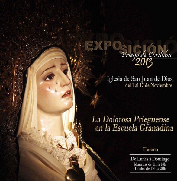 Con motivo de su XXV aniversario fundacional, la Hermandad de Nuestro Padre Jesús Preso y María Santísima del Mayor Dolor ha organizado esta exposición titulada "La Dolorosa Prieguense en la Escuela Granadina", que ofrece la histórica oportunidad de contemplar de una forma conjunta la práctica totalidad de las imágenes Titulares de las Hermandades y Cofradías de Pasión de la Semana Santa de Priego de Córdoba.