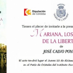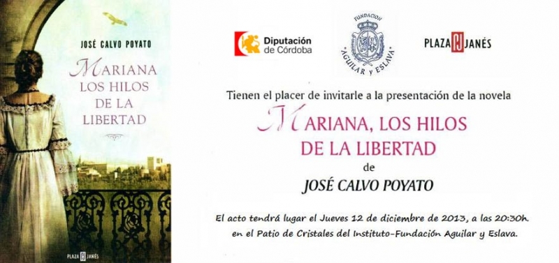 El próximo 12 de diciembre de 2013, a las 20:30h. en el patio de cristales del Instituto-fundación Aguilar y Eslava, José Calvo Poyato presentará su nuevo libro "Mariana, los hilos de la libertad", editado por Plaza y Janés. Una novela que, según la lista de los más vendidos de la revista La aventura de la Historia, se ha colocado el número seis, junto a Santiago Posteguillo (Circo Máximo) y Julia Navarro (Dispara, yo ya estoy muerto). Con tal motivo, hablamos con él en una entrevista sobre su nueva novela y algunas otras cuestiones del oficio de escritor.