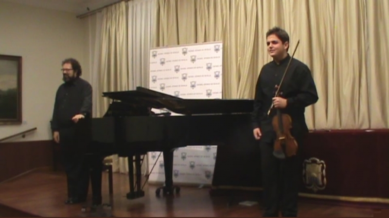 El pasado 29 de noviembre Carlos Rafael Martínez Arroyo dio un Recital en Sevilla en el Excmo. Ateneo, formando dúo con el excelente pianista germano-español Arnold W. Collado, con un salón repleto de público (se veía alguna que otra cara egabrense), en el que el triunfo de Carlos fue de los que nos tiene acostumbrados, lo que el público sevillano supo entender desde su primera obra, con una salva estruendosa de aplausos y bravos al terminar Tartini.