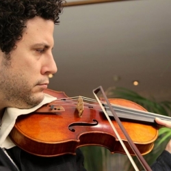 Un violinista muy hecho, el granadino Pablo Martos Lozano, formado en Alemania, EE.UU. y Salzburgo fue el encargado de interpretar a Brahms. Pablo tiene un currículo impresionante, que resumo con datos significativos. Ha actuado como solista en numerosas salas de España, Alemania, Estados Unidos, Rusia e Israel, en la O.N.U. de Nueva York con el Garnati Ensemble el Día Mundial de los Derechos Humanos, ha realizado giras por el Oriente con dicho Ensemble, ha sido miembro de la Orq. West-Eastern Divan, actuando con ella en grandes salas como el Carnegie Hall de N.Y. la "Philarmonie" de Berlín o "La Scala" de Milán bajo la dirección de D. Barenboim. Ha actuado y grabado en TVE y Radio Clásica de RNE y ha hecho registros discográficos para el sello Sony Classical. Es Premio Andalucía Joven a la Solidaridad del Instº Andaluz de la Juventud, junto a su hermano Alberto (chelista), recibido de manos de la Presidenta de la Junta de Andalucía el pasado año. Actualmente es profesor de violín en el Conservatorio Superior de Granada donde ha formado a la egabrense Inés Ramírez Polo en su carrera superior de violín.