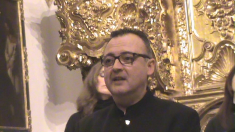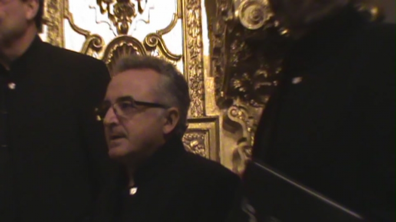 Aparecieron a las 20.30 horas los doce componentes del coro (mixto), entre los aplauso del público que llenaba el templo y una vez colocados en el presbiterio se presentó y nos saludó "un señor" con un atuendo característico de pregonero medieval, el actor Manuel Valle, que ilustró con sus palabras las piezas musicales que hicieron los/las coralistas en su programa, que estuvo dividido en tres partes, según las canciones que conformaron cada bloque. La dirección meticulosa, fue de Antonio Rodríguez Morales, autor de varias adaptaciones y arreglos de algunas obras.