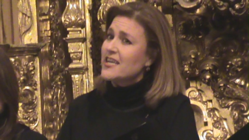 La 1ª parte estuvo dedicada a Cantigas y Llibre Vermell y así el pregonero nos habló sobre Alfonso X el Sabio, que nació en 1221 y su composición de las Cantigas a Santa María y sobre las visitas que hizo a Montserrat a ver la Virgen y pedirle protección. Hicieron "Stella splendens", "Santa María Strella do día", "Rosas das Rosas", María Matrem" y "Cuncti simas Concanentes". En esta última del Llibre Vermell, la soprano Emilia Gálvez hizo una exhibición como solista de su magnífica voz (no es cantante profesional, lo que le da más valor) y como era de esperar los aplausos y bravos premiaron su gran actuación.