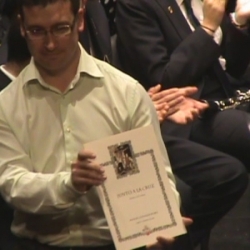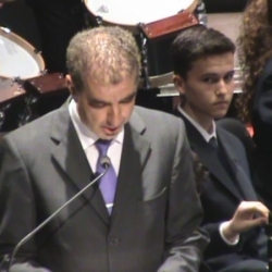 José Lopera agradeció a todos los presentes su asistencia y después hizo lo mismo el Presidente de la Asociación Banda de Música de Cabra, Víctor Campillos López, que agradeció a las personas que ocupaban las butacas el haber acudido a la convocatoria del concierto, a las cofradías el trabajo desarrollado para el engrandecimiento de nuestra Semana Santa y a los componentes de la banda el esfuerzo realizado para mantener en repertorio 90 marchas procesionales. También recibió los plácemes el presentador, por su trabajo y buena exposición del mismo, recibiendo como objeto-recuerdo una guitarra pequeña en miniatura.