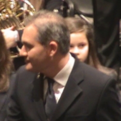 Roque Baños López, murciano de Jumilla, estudió en el Conservatorio de Murcia saxofón. En 1986 se traslada a Madrid donde accede a su Conservatorio Superior y consigue las titulaciones de saxofón, piano, armonía y dirección de orquesta. Becado por el Ministerio de Cultura va a EE.UU. Boston, donde comenzaría su carrera como compositor de música de cine con una amplia gama de bandas sonoras de distintos estilos musicales. Ha obtenido muchos premios, entre ello tres Goya. La marcha que oímos, "El Sepulcro" la compuso para la famosa película "Alatriste", aunque por circunstancias no conocidas fue sustituida por otra. Es espléndida y muy fúnebre. Como sabemos, Roque Baños fue el director que empuñó la batuta en la inauguración del Teatro "El Jardinito" en 2008 dirigiendo música de cine a la Orquesta de Córdoba y al Coro Ziryab.