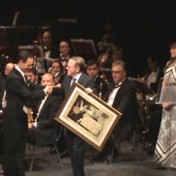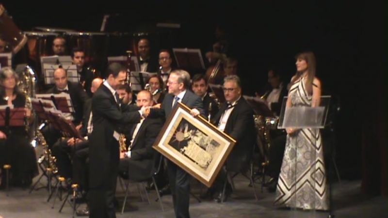 El presidente del Excmo. Ateneo, Alberto Máximo Pérez Calero, entregó a la Banda un diploma, obra de García Ramos, recuerdo por los muchos años de colaboración entre ambas entidades, que fue recibido por el director de la banda en nombre de todos los componentes. Aplausos del público.