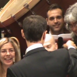 La buena temperatura mantuvo a muchos asistentes a las puertas del Lope de Vega al finalizar el concierto, con los comentarios de rigor sobre el mismo y nuestro paisano recibió la felicitación de bastantes personas por su éxito.