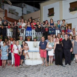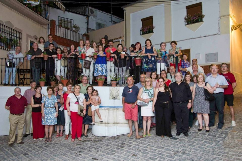 La noche nos acogió en el barrio del Cerro: plaza de Santa María la Mayor, iglesia de San Juan Bautista (Rafael nos contó la historia de la piedra epigráfica en la que figura el obispo Bacauda), patio de la calle Toledano 21 (en el que Cecilia, formando parte del impresionante paisaje de macetas, nos volvió a emocionar con la interpretación de un solo de mandolina: "Estudio n.º 3 Op. 9" de Felix de Santos Sebastián. Y nuestro último destino: fuente de la Cuesta del Avellano, cuyo emplazamiento original estaba en el patio de la casa solariega de la familia de los Cubero de la calle Priego, hoy sede del Patronato Municipal de Bienestar Social. No faltó la alusión a los Baños de San Juan en las últimas palabras de Rafael Luna. Socorro Moral, delegada municipal de Educación agradecía la presencia de los participantes; antes, en el inicio del paseo, Javier Ariza daba la bienvenida. No faltó la foto de familia ni el recuerdo de la ruta: unas postales de algunas de las fuentes emblemáticas de Cabra.