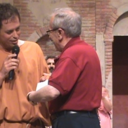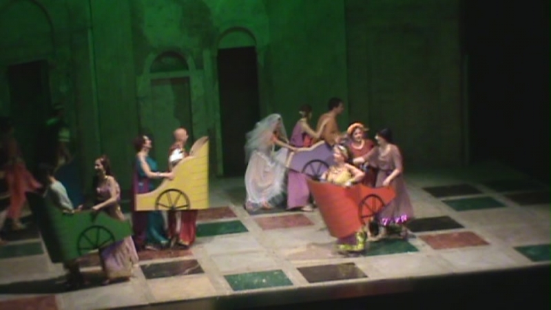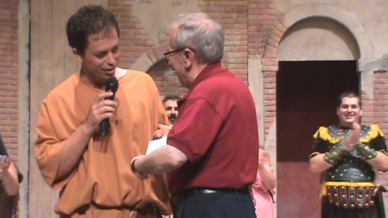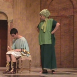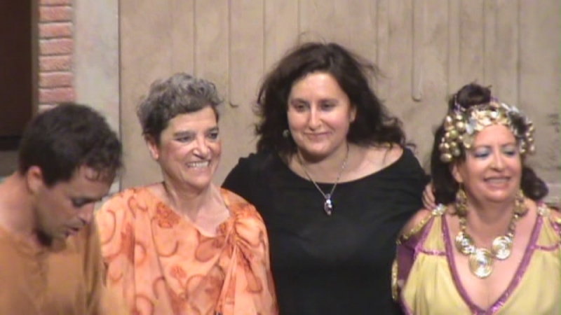 Pero las cosas le van mal a Pseudulus para lograr su libertad, pues aparece el pintoresco personaje Erronius, que perdió a sus hijos y que lleva 20 años buscándolos (su aparición en escena, como dije, fue apoteósica) descubre por los anillos que estos son Miles Gloriosus y Philia, por lo que no se pueden casar al ser hermanos. Lo que le vino muy bien a Hero para contraer matrimonio con Philia. También Alcmena logró casarse con un soldado y Pseudulus consigue su libertad y una hermosa concubina por esposa. Final feliz. El público aplaudió de pie esta divertida comedia en la que también tuvimos de personajes secundarios a Isabel Godoy y Alba Cazorla que hicieron de Esclavas, Acróbatas y Plañidera, a Charo Ascanio como Madre de Calpurnia y una serie de pequeños en los papeles de Ciudadanos y Esclavos cuyos nombres refiero: Inma Osuna, Paula Jiménez, Juanma Rodríguez, Sofía Martínez, Eugenia Ponferrada y Alicia Jiménez.