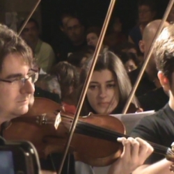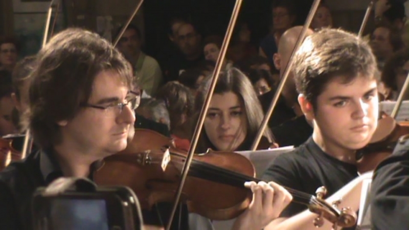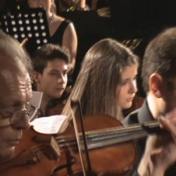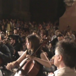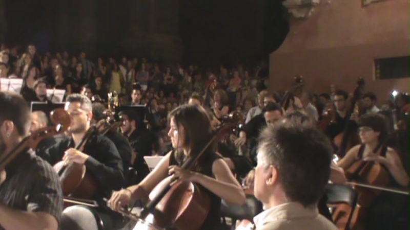 Sin más preámbulos, a la hora anunciada 10 de la noche, el concertino de la agrupación, profesor de violín en los citados cursos, Janos Nagy procedió a la afinación de la orquesta, cosa que se produjo en un silencio espectacular pese al gentío que llenaba la plaza.