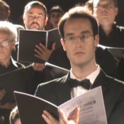 El numerosísimo Coro, que para manejarlo hay que saber hacerlo, estuvo en las manos preparatorias del Concierto, de Juan Ignacio Rodríguez Herrera, logrando un empaste total y así las distintas cuerdas (sopranos, contraltos, tenores y bajos) bien conjuntamente o por separado estuvieron perfectas y llenaron con sus voces la Plaza de las Pasiegas. En el coro, que estaba formado por colaboradores, había dos lucentinos, el bajo Antonio Rodríguez Morales (director del Coro de Cámara Elí Hoshaná de Lucena) y su esposa, la contralto Mariola Arjona Huertas, padres de la violinista Marina, ya mencionada.