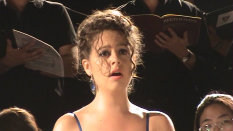 Como todos sabemos, en esta sinfonía está en su 4º movimiento la famosa "Oda a la Alegría" (An die freude), la música del Himno de Europa, y en él es donde interviene el Coro y los Solistas vocales.