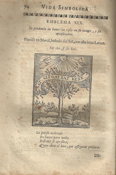 La "Vida simbólica del glorioso S. Francisco de Sales" está considerada una de las obras más representativas de la emblemática hagiográfica y piadosa que se conservan. Fue escrita por Adrian Gambart en 1664 y traducida y publicada en castellano no muchos años después. Un ejemplar de la traducción, publicada en Madrid en 1688 y realizada por el licenciado don Francisco Cubillas Donyagüe (seudónimo del jesuita Bartolomé de Alcázar), forma parte del fondo bibliográfico de la Biblioteca Histórica Aguilar y Eslava.