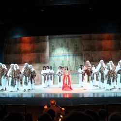 Un vestuario precioso muy ajustado a época, de Nina Babutac, coadyuvó junto a una luminotecnia de calidad (la escena del Tempo de Ftah no pudo estar mejor lograda y se mereció los aplausos del público al abrirse los cortinajes en el 2º cuadro del acto I) a que visualmente el espectáculo "entrase por los ojos".