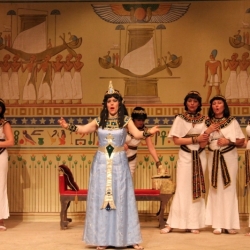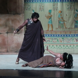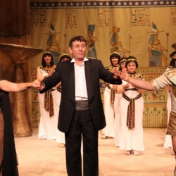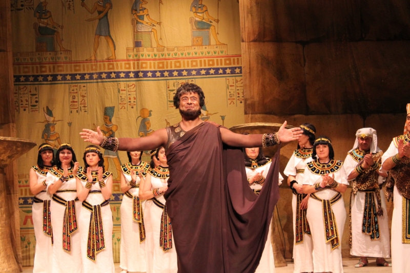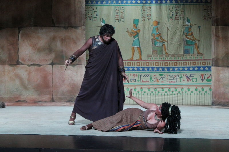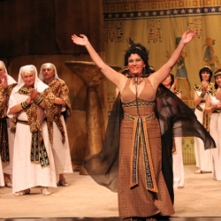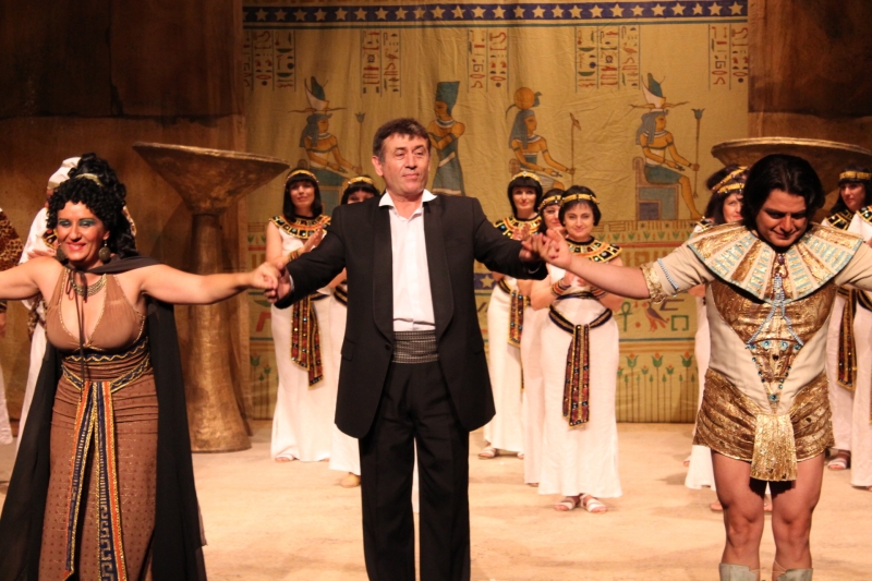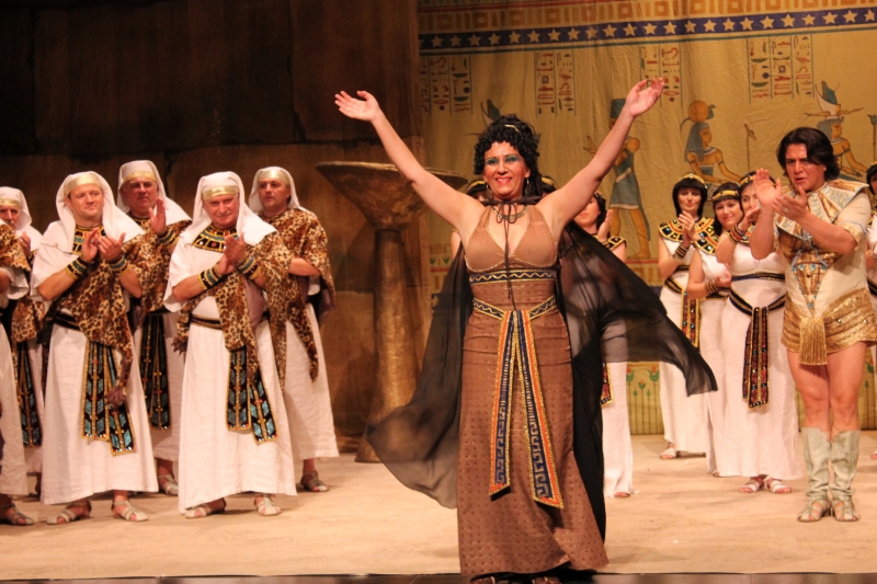 El pasado 14 de agosto la ópera, de la mano de Concerlírica, que dirige Leonor Gago desde 1.995, hizo acto de presencia una vez más (ya se ha representado Rigoletto y Carmen) con la AIDA de Verdi, una dignísima Aida, escenográficamente clásica, que representó los cuerpos estables de la Ópera Nacional de Moldavia con su Orquesta y Coro junto a solistas internacionales, en el teatro egabrense, que aun pequeño ha cumplido con creces su función en esta representación, pues está bien dotado escénicamente. Por supuesto, en las partes de la Aida gran ópera-espectáculo, las proporciones del escenario y la "nómina" de la formación moldava limitan el que puedan aparecer grandes masas, pero fueron suplidas con ingenio, para que no faltase nada de su partitura musical.