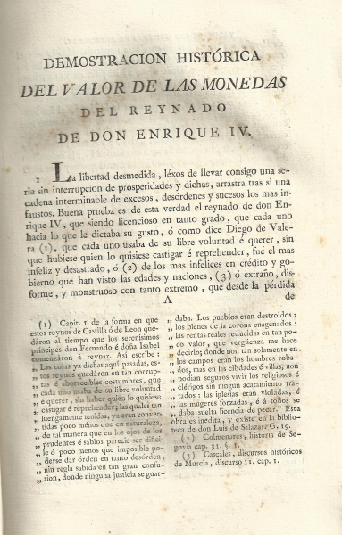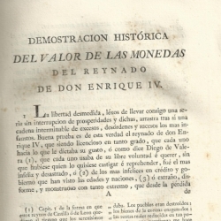 "Demostración histórica del verdadero valor de todas las monedas que corrían en Castilla durante el reynado del Señor Don Enrique IV y de su correspondencia con las del Señor D. Carlos IV" (1805)