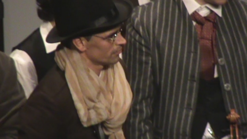 Stefan (Miguel Herrador) es un violonchelista expulsado de una orquesta y con la ayuda de la Bruja Supureva (Eva Calero) consigue un hechizo contra el violín concertino Charles Mortier (Carlos R. Martínez). Este hechizo hace su efecto y el violinista no puede tocar hasta que el director Sergei Celidimanche (Domingo Escobar) consigue romperlo. También interviene otro personaje, Artemisia (Raquel Romero). El guión es de Miguel Herrador que ha llevado la dirección y el montaje del film y la cámara de Domingo Escobar (le mete mano a todo). La música que toca en el film Charles Mortier, fue realizada en directo por el violinista egabrense Carlos R. Martínez, en otra de sus magistrales intervenciones solistas en una exhibición de las que nos tiene acostumbrados, muy bien acompañado por la orquesta bajo la atenta batuta de Domingo Escobar. Hay un movimiento en la obra de Báez, "Tango" en la que la profesora Azahara Escobar lució su saber con el chelo".