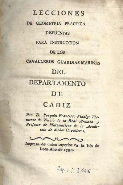 Lecciones de geometria practica dispuestas para instruccion de los cavalleros guardias-marinas del departamento de Cadiz / por Joaquin Francisco Fidalgo.-- Isla de León : [s.n.], 1790.
