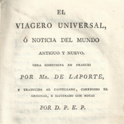 "El viajero universal, o Noticia del mundo antiguo y nuevo" por Laporte y otros, traducida al castellano por D. P. E. P. (Madrid, 1795-1799)