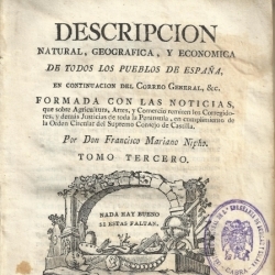 "Descripción natural, geográfica y económica de todos los pueblos de España" por Francisco Mariano Nipho (Madrid, 1771)