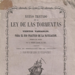 "Nuevo tratado de la ley de las tormentas y vientos variables para el uso práctico de la navegación", escrito en inglés por W. Reid y traducido por Juan Nepomuceno de Vizcarrondo (Cádiz, 1853)