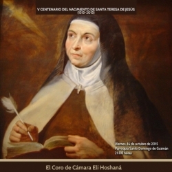 El Coro de Cámara Elí Hoshaná "Ciudad de Lucena" conmemora el V Centenario del Nacimiento de Santa Teresa de Jesús con un concierto en honor de la doctora de la Iglesia católica, que tendrá lugar en la parroquia de Santo Domingo de Guzmán de Cabra el viernes 16 de octubre a las 21:00 horas.