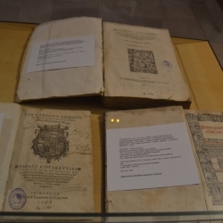 Estos días podemos contemplar en una de las vitrinas de la Sala de Exposiciones Temporales del Museo Aguilar y Eslava tres joyas bibliográficas del siglo XVI, pertenecientes al fondo antiguo de la Biblioteca Histórica Aguilar y Eslava. Se trata de una exposición transitoria justificada por la visita del Obispo de Córdoba al Instituto y Fundación Aguilar y Eslava. El objetivo ha sido enseñar algunos de los tesoros que, como verdaderas reliquias, se conservan formando parte del patrimonio de la institución.