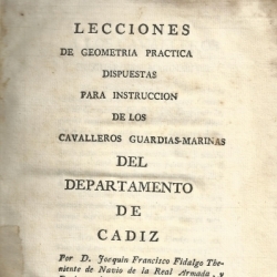 "Lecciones de geometría practica" es un libro de Joaquín Fidalgo cuyas lecciones están dispuestas para la instrucción de los caballeros guardias marinas del Departamento de Cádiz. Impreso en 1790 en la isla de León, se publicó siendo Fidalgo teniente de navío de la Real Armada y profesor de matemáticas de la Academia de dichos caballeros. Este ejemplar forma parte de la Biblioteca Histórica Aguilar y Eslava y lo traemos hoy como "Libro de la Semana".
