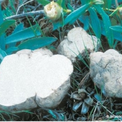 Se trata de la Criadilla Jarera "Choiromyces gangliformis Vittad". Es un hongo hipogeo (fructifica bajo tierra), subgloboso, generalmente irregular y giboso, de 2,5-10 cm de diámetro. Peridio (envuelta) liso, a veces agrietado, blancuzco a amarillento o crema-pardusco. Gleba (interior) compacta, blancuzca al principio para pasar a crema o pálido-amarillenta, con numerosas y patentes venaciones blancuzcas. Olor aromático al principio y desagradable en la madurez.