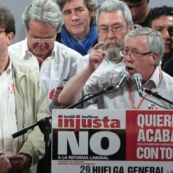 A las 00.00 horas de este jueves ha comenzado la huelga general de 24 horas convocada en España por CC.OO. y UGT en rechazo a la reforma laboral del Gobierno de Mariano Rajoy, que afronta así su primer paro general desde que tomó posesión de su cargo hace justamente hoy 100 días.