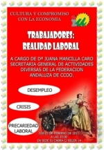 La primera actividad de 2011 del Ciclo Cultura y Compromiso, organizado por la asamblea local de IULV-CA en Cabra, tendrá lugar el próximo miércoles 23 de febrero a las 20:00h. en la sede de dicha organización. En esta ocasión participa Juan Mancilla, secretaria general de Actividades Diversas de CCOO en Andalucía y hablará sobre Trabajadores y Realidad Laboral.