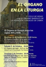 El domingo 26 de Septiembre dará comienzo el Ciclo de Misas con el Órgano Barroco de la Parroquia de Ntra. Sra. de la Asunción y Ángeles de Cabra, coincidiendo con la estancia de la Virgen de la Sierra en la ciudad. En esta segunda edición el monográfico abarca la música de órgano en Europa entre los siglos XVI y XVIII, centrando la atención en la figura de Antonio de Cabezón, el músico burgalés que al servicio de Felipe II fue pionero de la técnica organística en el siglo XVI, y de cuyo nacimiento se cumplen 500 años (1510-2010).