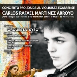 El próximo 24 de junio tendrá lugar en el Teatro El Jardinito de Cabra un concierto extraordinario para ayudar al violinista egabrense Carlos R Martínez Arroyo en el que participarán la Orquesta SYSO, dirigida por el músico Domingo Escobar y como solistas Cristina Regojo y el propio Carlos Martínez.