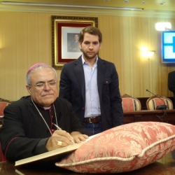 En la tarde de este miércoles, el Obispo de Córdoba, Demetrio Fernández, ha comenzado su visita pastoral a nuestra localidad siendo recibido por el Alcalde de la Ciudad, Fernando Priego (PP) y la presencia de otros miembros del Gobierno Municipal de coalición PP-PA. En la planta baja, junto a la puerta de entrada al edificio municipal, fue saludado por los concejales presentes. El representante eclesiástico firmó en el libro de oro del Ayuntamiento y recibió de manos del regidor egabrense un recuerdo de nuestra localidad en forma de obsequio