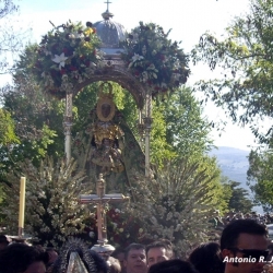 En torno a las 11 de la mañana, la Bendita Imagen de la Patrona de Cabra, Nuestra Señora de la Sierra, atravesaba la reja que da entrada a su Santuario acompañada por varios centenares de devotos que, habiéndola acompañado en el camino o esperándola en el propio Santuario, no querían faltar a la cita que anualmente tiene lugar pasado aproximadamente un mes desde esa fecha clave marcada en el calendario egabrense, del 4 de septiembre. Exornada floralmente con flores que recordaban los colores de la bandera de Cabra y con un manto de color verde con fondo floral con el escudo de la Guardia Civil en su parte posterior.