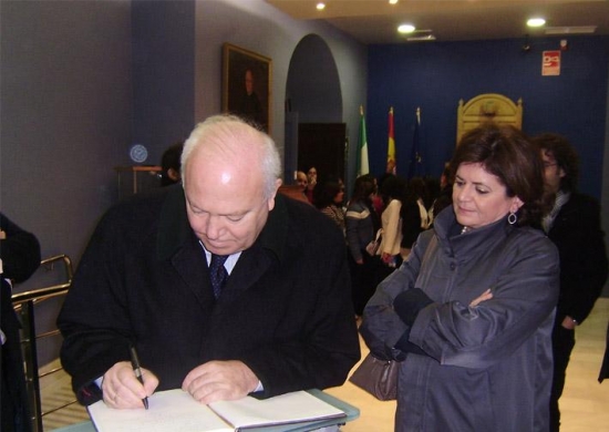 Moratinos saludó cordialmente al alumnado y profesorado que también se encontraban en el museo y en la dedicatoria escrita en su libro de firmas dejó escrito: