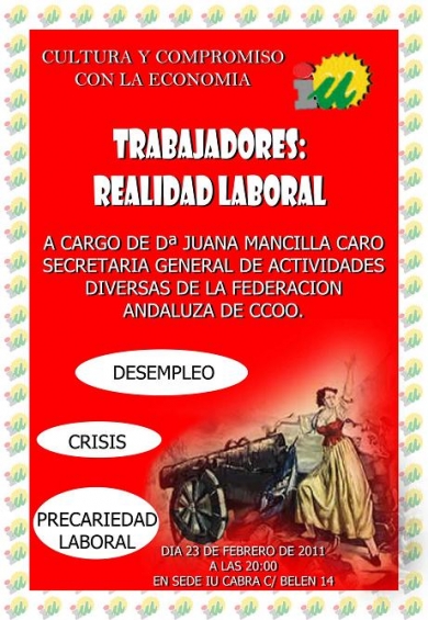 La ASAMBLEA LOCAL de IULV-CA de Cabra invita a la primera actividad de la edición 2011 de CULTURA Y COMPROMISO. Este año el ciclo tratará de los siguientes temas: ECONOMIA, LITERATURA Y POLITICA.
